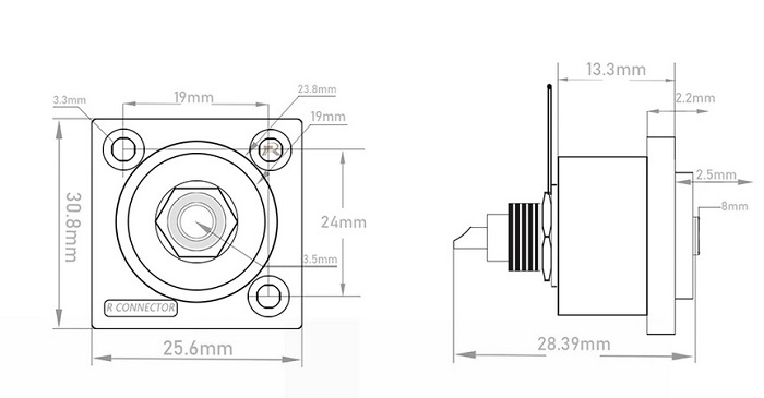 BANANA Z016 гнездо на панель, черное, (клемма приборная) 4мм, 30В, пайка , Китай Размер установочного отверстия : Ф12 м