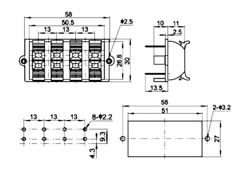 Зажим 10-0034, 24*70mm , 4-контактный, Китай