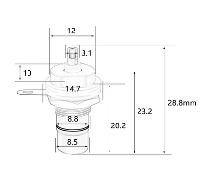 BANANA Z017 гнездо на панель, синее, (клемма приборная) 4мм, 19А, пайка , Китай Размер установочного отверстия : Ф12 мм