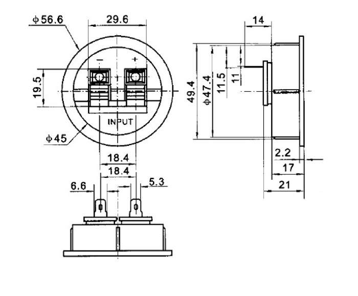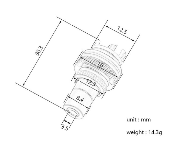 BANANA Z016 гнездо на панель, синее, (клемма приборная) 4мм, 30В, пайка , Китай Размер установочного отверстия : Ф12 мм