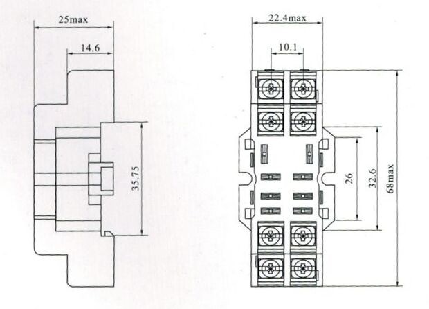 Розетка PYF14A, для реле 4453(18F)-4, Китай Для реле 4453(18F)-4 / 5А.~240В. / Раб.темп.: -55...70°C. / На DIN рейку.