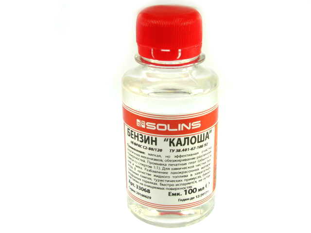 Растворитель- бензин 'Калоша' 100мл, для промывки печатных плат, универсальный очиститель, SOLINS