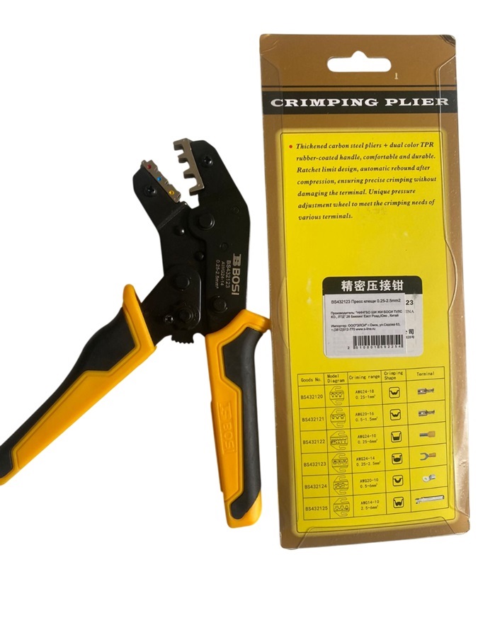Кримпер BS432123 (пресс-клещи), для обжима для обжима клемм диаметром 0.25-2.5мм2. , Bosi Tools
