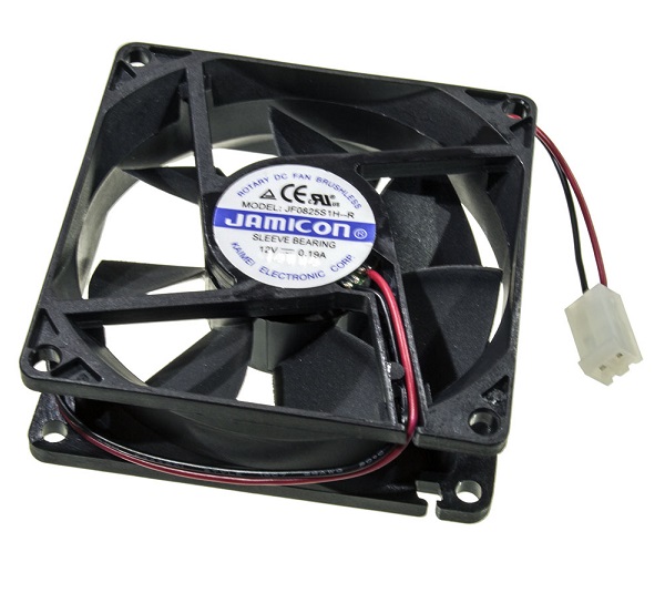 Характеристики: [=12В][ 0,19А][ 80*80*25мм][ подшип.скольж.]