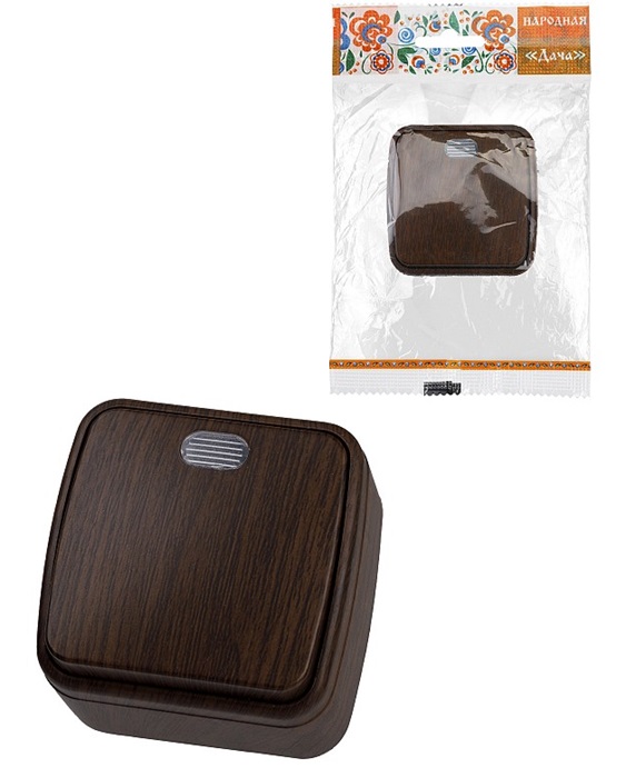 Выключатель 'Дача' 1-клавишный, венге, с подсветкой, открытой установки, IP20, 10А, ( SQ1824-0045), TDM