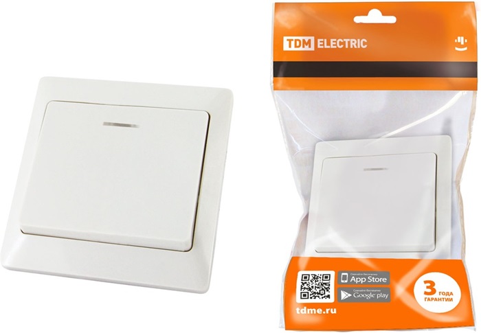Выключатель 'Ильмень' 1-клавишный, белый, с подсветкой, IP20, 10А, (SQ1823-0003), TDM