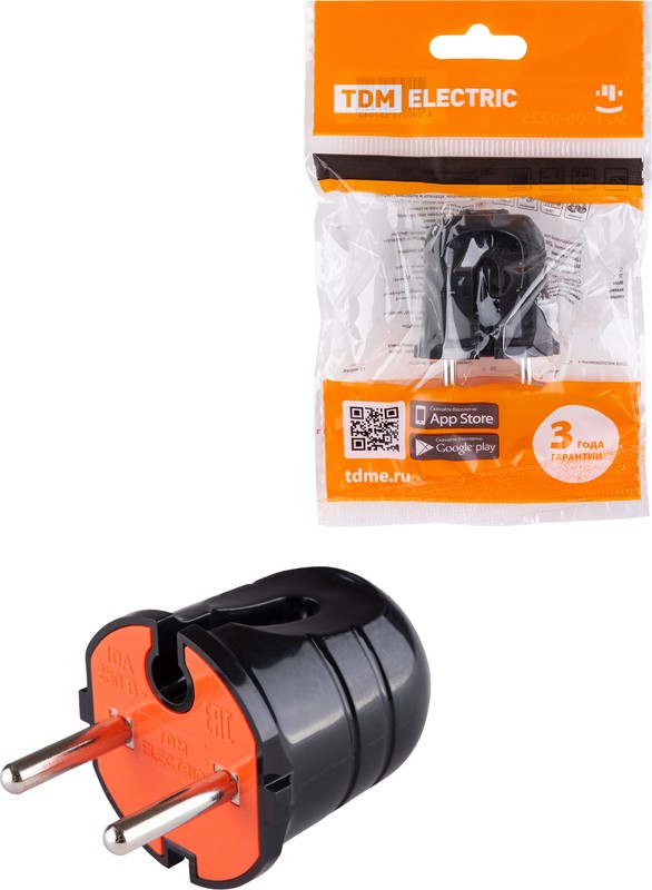 Вилка черная с красной вставкой, без заземления, 10А 250В, (SQ1806-0210), TDM