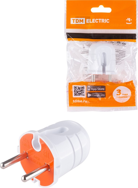 Вилка белая с красной вставкой, без заземления, 10А 250В, (SQ1806-0209), TDM