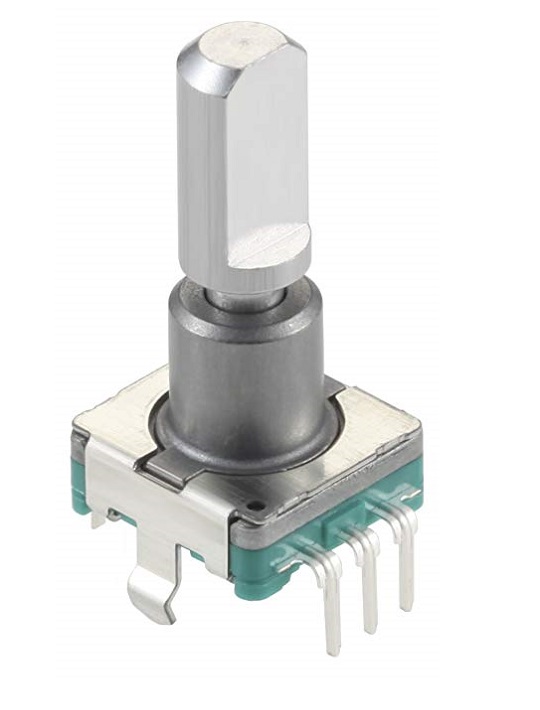 18 щелчков, 9 импульсов, металлический вал с лыской 20мм, с кнопкой, длина хода кнопки 0,5мм, вертикальный