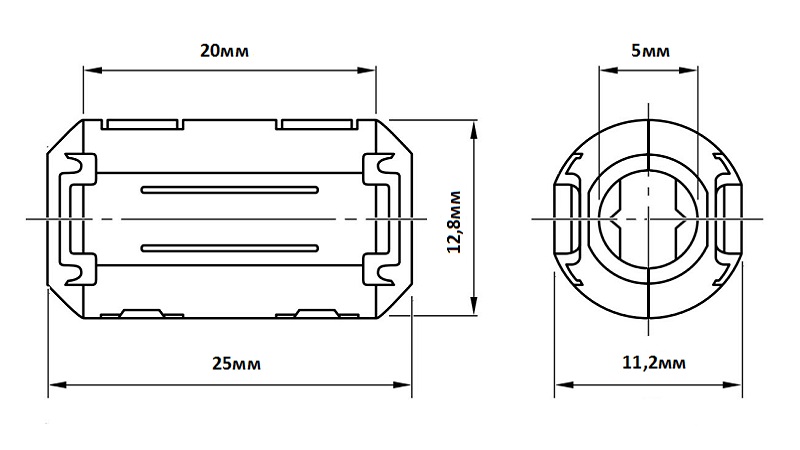 Фильтр на кабель ферритовый ZCAT1325-0530A-BK черный, 25*11,2*12,8мм; d входящего кабеля =3..5 мм, Китай Фильтр подавлен