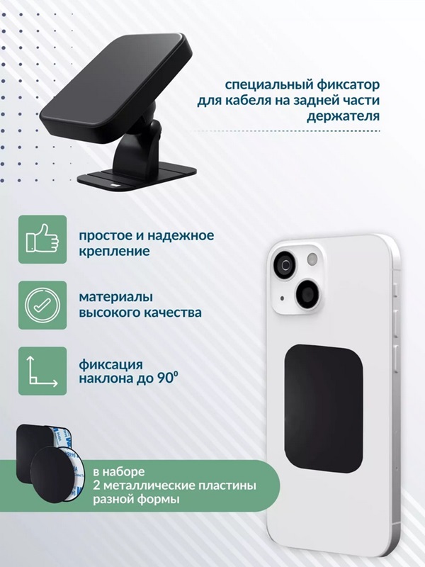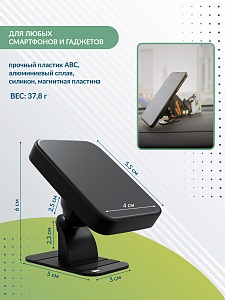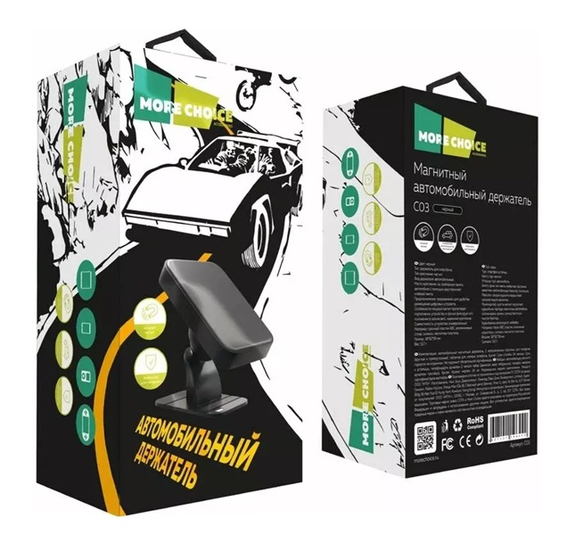 Держатель автомобильный More Choice C03 магнитный, универсальный, черный, с табличкой для номера телефона / поворотный / н