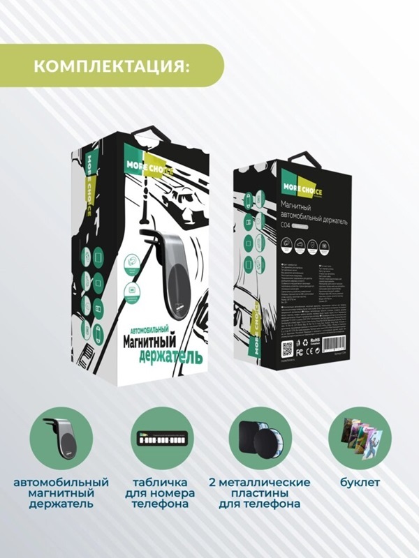 Держатель автомобильный More Choice C04 магнитный, универсальный, серебристый, с табличкой для номера телефона / поворотн