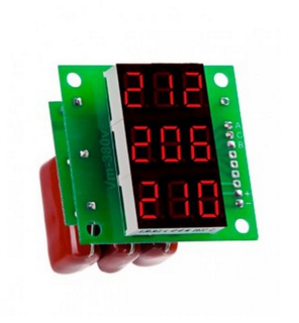 Для измерения напряжения в ТРЕХФАЗНОЙ сети переменного тока. Размеры индикатора 42х25мм, питание от сети