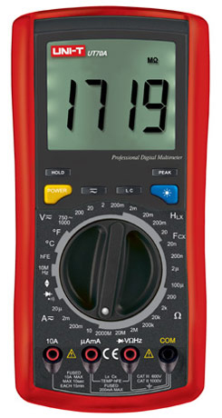 измерение напряжения, тока, сопротивления,ёмкости,частоты, температуры, индуктивности, проверка диодов, транзисторов, прозвонка цепей. Автоотключение.Запоминание результата.