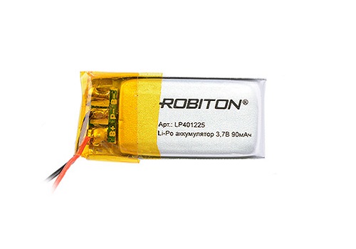 Характеристики: [3,7В][65мА/ч] [25*13*4,4мм] [с провод.] [плоский]