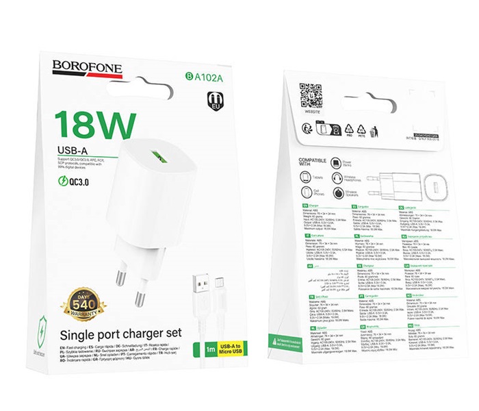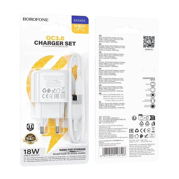 Зарядное устройство автомобильное Borofone BZ12A USB QC3.0, белое, 3А / быстрая зарядка / без кабеля, Borofone Встроенный