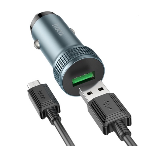 Зарядное устройство автомобильное Hoco Z49A + кабель USB- micro USB, серый металлик, 3А / быстрая зарядка / длина кабеля 1