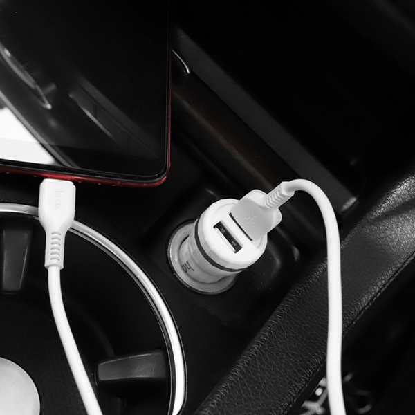 Зарядное устройство автомобильное Hoco Z27 2USB+ кабель USB- micro USB, белое, 2.4А / 5В / длина кабеля 1м, Hoco Зарядное