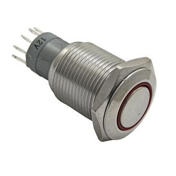: 250В, 3А, 1NO1NC, кольцевая красная подсветка (12В), IP65.