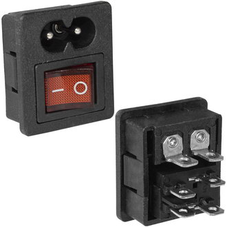 Разъем AC-045 вилка панельная 2-х полюсная, с выключателем, тип 'Восьмерка' 250В, 10А, -25…+70°C, Китай