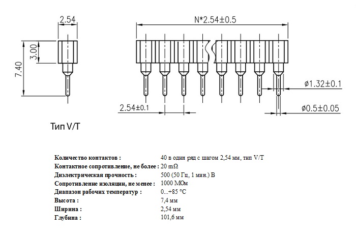 SCSL-40 (2.54mm), (PSLM 1x40 цанг гнёзда), Китай