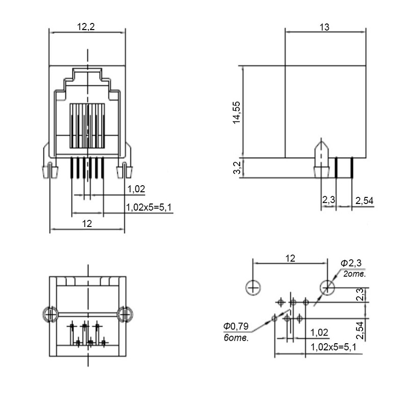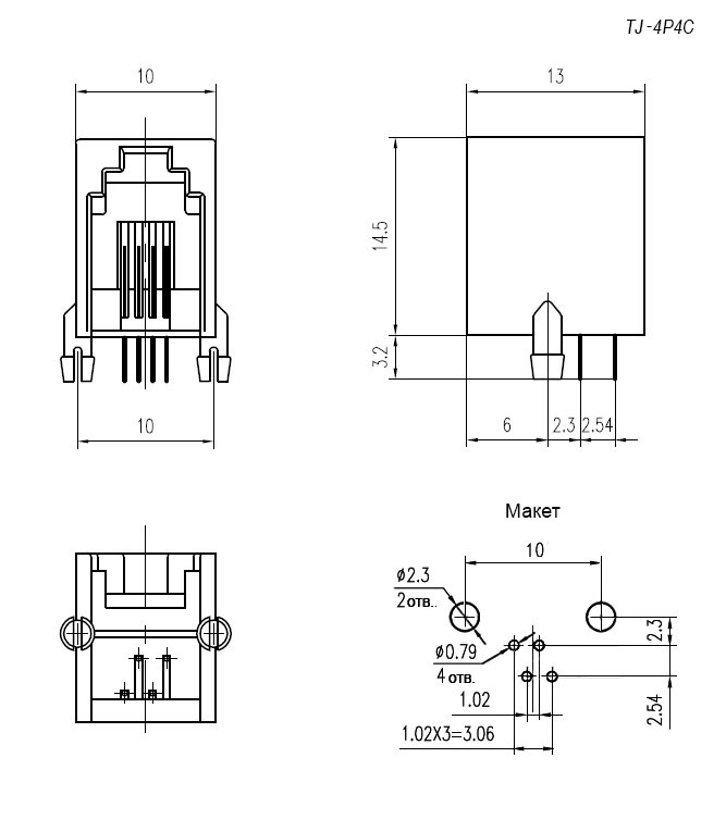 Разветвитель TJ6P4C гнездо - TJ6P4C гнездо*2 (GCT11-2-6P4C), Китай