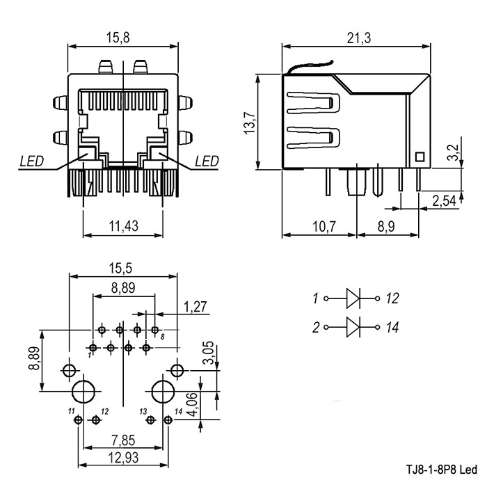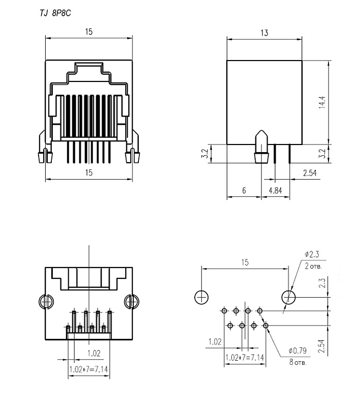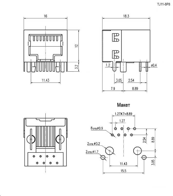 Разветвитель TJ8P8C гнездо - TJ8P8C гнездо*2 (GCT11-2-8P8C), Китай