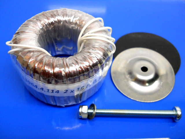 Характеристики: 2 обмотки по 15В (ХХ -17,5В), по 0,35А.